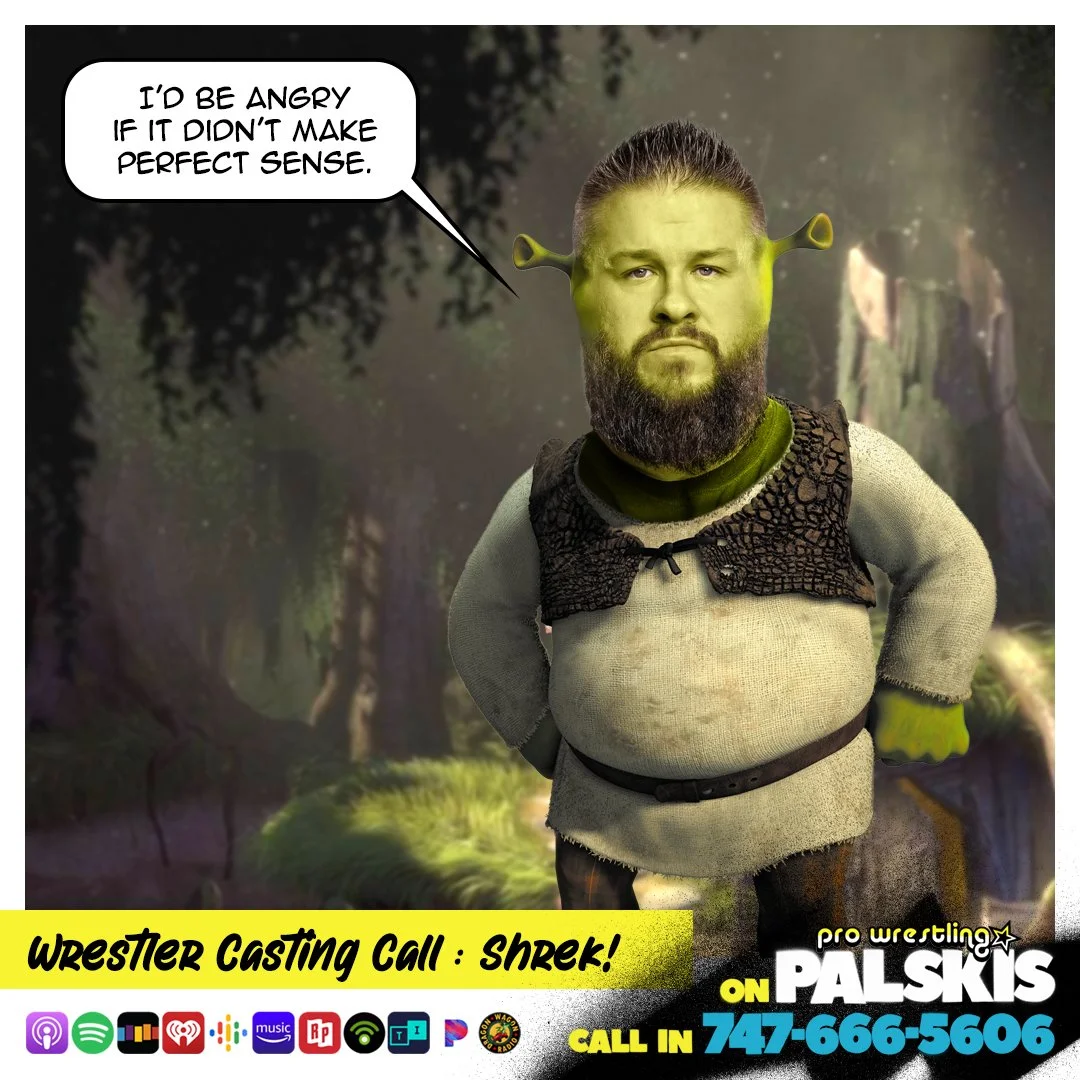 The Palskis are once again tasked with casting a popular film or television franchise with wrestlers because NO ONE ELSE IS GOING TO. Its a burden only we carry. This time we're heading to the fairytale land of SHREK to rescue a princess, fall in love with a dragon, and find ourselves a noble steed.... or I guess more specifically, a "Steen."
